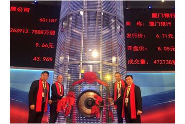 10月27日,大洲集團參股企業(yè)——廈門銀行股份有限公司(股票代碼:601187)在上海證券交易所掛牌上市!集團董事長陳鐵銘先生應(yīng)邀蒞臨現(xiàn)場與眾股東代表一同敲響上市鑼音!